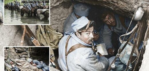 INCREDIBLE colourised images reveal what life was like for French soldiers who were living in the trenches of World War One.