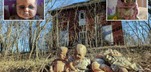 A SPOOKY hidden house in the woods abandoned for 30 years was discovered filled with creepy dolls ripped to shreds.