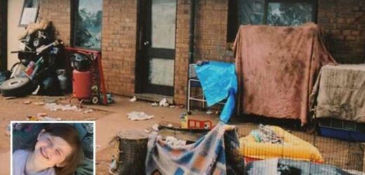 Her five siblings – aged eight, ten, 13, 14 and 15 – were also living at the neglected property, littered with old toys, boxes, a tent and electric appliances.