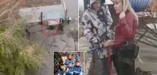 She is then seen on a harrowing video leaping from the rooftop moments after husband Alexander Tkachenko told her: ‘I love you’.