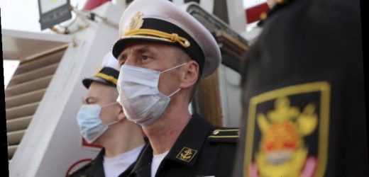 A Russian commander stands during a welcoming ceremony for a joint naval exercise with the Iranian navy and Iran’s Revolutionary Guard navy. Credit:AP