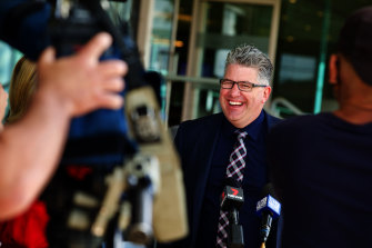 John King met punters at the gates on Thursday.Credit:James Mepham