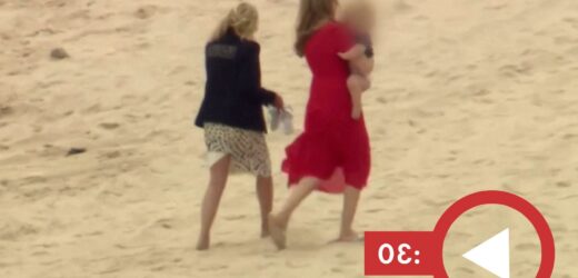The two women were spotted swapping their heels for flip-flops to frolic on the windy beach at Carbis Bay.