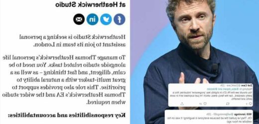 Thomas Heatherwick advertised for a new personal assistant online, but has since removed the ad after Twitter users poked fun at his expectations.