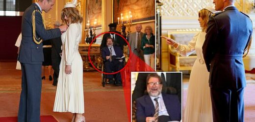 Kate Garraway is presented with her MBE by Prince William as her Covid-stricken husband Derek Draper watches on from his wheelchair