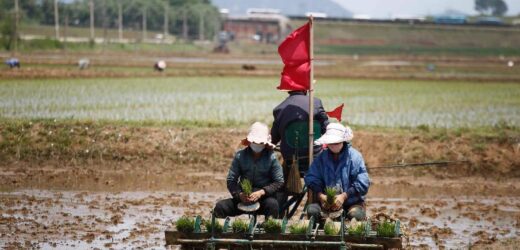 Farmers are transplanting rice at the Namsa Co-op Farm of Rangnang District in Pyongyang, North Korea, on Tuesday, May 25, 2021. (Photo: Jon Chol Jin, AP)