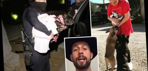 Ryan Fischer, 30, was walking the superstar's pooches, Koji, Miss Asia and Gustavo, just before 10pm on Wednesday night when the shocking incident occurred.