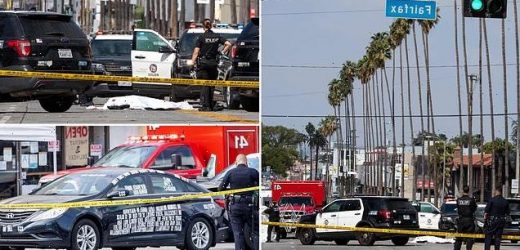 LA police shoot dead a man in body armor on Sunset Boulevard after he crashed his car into them, got out and began a ‘countdown’ with his hands behind his back