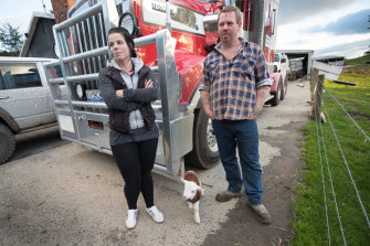 Brenton and Kat Gration are facing a wait of up to six weeks for power on their Mirboo East property.Credit:Jason South