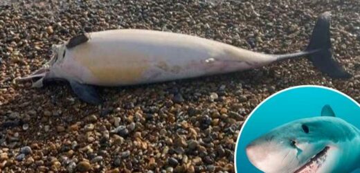 The savaged creature was found washed up in Hove, East Sussex, on Monday morning by a runner.