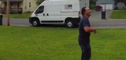 His van, which is supposedly full of meat, is parked nearby on the street. Aside from an American flag printed on the side, it doesn’t have any other visible markings.