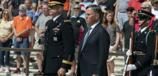 Australian Deputy Prime Minister Richard Marles, at the Tomb of the Unknown Soldier, at Arlington National Cemetery, in ArlingtonCredit:AP
