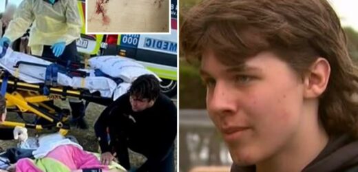 Jack Shaw, 15, and his friend Tiarna, also 15, narrowly escaped with their lives as the huge beast savaged them at a beach near Melbourne, Australia.