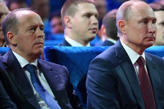 FSB director Alexander Bortnikov, left, with President Vladimir Putin in December 2019.Credit:AP