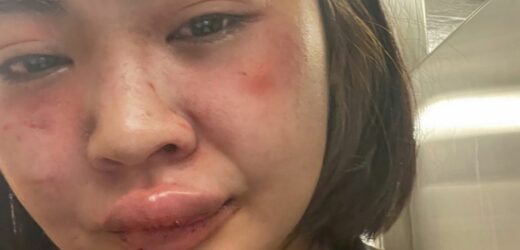 A photo provided by Bew taken shortly after the assault shows her face covered in painful-looking purple bruises with dried blood caked under her nose and near her mouth.