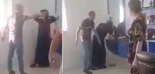 Shocking moment enraged husband punches and kicks his wife for visiting a beauty salon in Turkmenistan amid ‘morality’ crackdown by ex-Soviet state’s new dictator