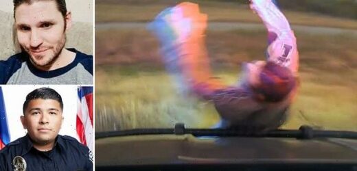 Biker is suing a Texas cop after dash cam footage captured the officer running over the man with his SUV as he tried to flee a traffic stop on foot: Motorcyclist suffered fractured spine, broken leg and ribs