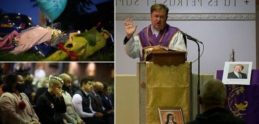 Tributes paid to ‘Mr Southend’: Mourners left in tears at vigil to remember Sir David Amess as priest praises murdered Tory MP ‘who died doing the thing he loved most’