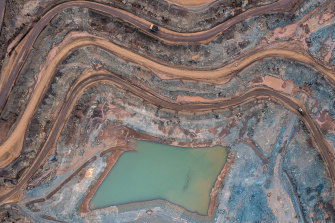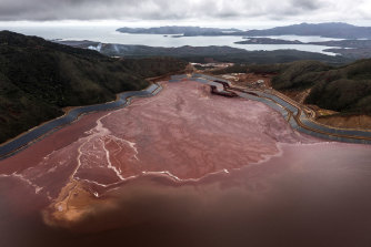 A view of wet tailings, toxic sludge waste from the mining process, at the Prony nickel mine in Goro, New Caledonia.Credit:Adam Dean/The New York Times
