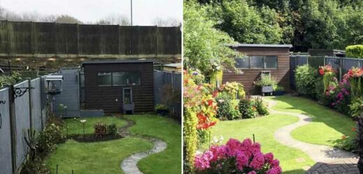 Shocking before and after pictures show one garden bursting with colour surrounded by lush green trees which has now been left with barren views of the motorway.
