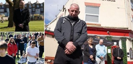 Drinkers at the Duke of Edinburgh pub in Hull observe a minutes silence during the funeral