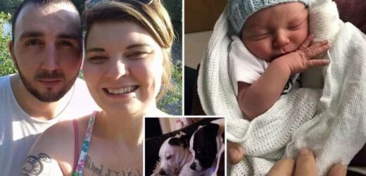 A NEWBORN baby boy was mauled to death by a family dog as his mum slept next to him on the sofa, an inquest heard today.