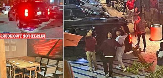 EXCLUSIVE: Barack Obama’s Secret Service SUV parks in handicapped space for TWO HOURS while he enjoys dinner with daughters Sasha and Malia at swanky sushi restaurant in LA