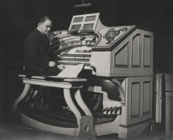 Organist Stanfield Holliday playing Eliza – then painted white – at the Capitol, c1946.Credit:Argus collection, Age archives
