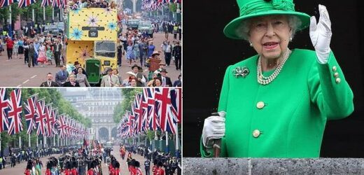 Four acts for the Queen’s seven decades of service: Thousands watch eclectic pageant celebrating best of Britain during Monarch’s 70 years on the throne as ‘national treasures’ including Sir Cliff Richard, Naomi Campbell and Alan Titchmarsh join the parade