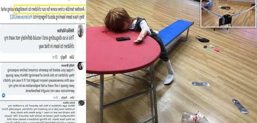 CSI primary school: ‘Disgusted’ parents slam teachers for setting up a ‘murder scene’ so that children as young as seven could learn about FINGERPRINTS as primary posts pictures of bloodied child mannequin slumped over a table on Facebook