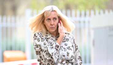 Donna Nelson, wrapped in possum fur, outside the inquest into her daughter’s death.Credit:Joe Armao