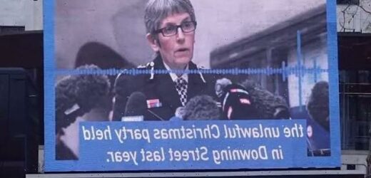 Political campaign group Led By Donkeys turned up outside the police force’s headquarters with a large LED screen yesterday questioning police over their response to the alleged event.