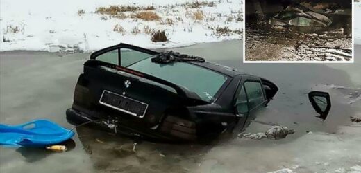 THE proud owner of a BMW he had just bought decided to test the car on a frozen river only for it to plunge straight through the ice.