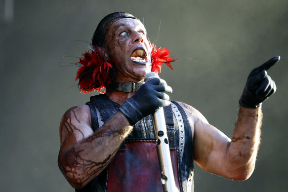 Till Lindemann, lead singer of German industrial metal band Rammstein, performs in Melbourne in 2011. Credit: Paul Rovere