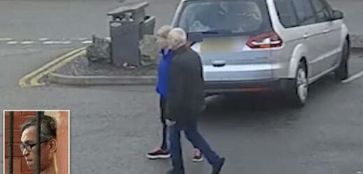 The gang plotted to abduct the child after school, threatening the foster carer with a knife, pictured here, Jane Going-Hill and Wilfred Wong, left, captured on CCTV outside Bangor station in North Wales