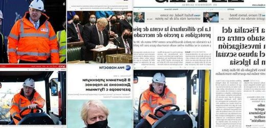 Spanish daily El Pais saw fit to plaster an image of Johnson clad in hi-vis and maniacally driving a forklift on today’s front page with the headline ‘Report on parties deals another blow to Johnson: The report on gatherings held amid the pandemic condemns alcohol consumption’, while their online reporters noted that Johnson ‘apologised for the scandal but has avoided taking action’.