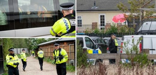 Dramatic pictures show dozens of police cars and officers carrying out the raid this morning.