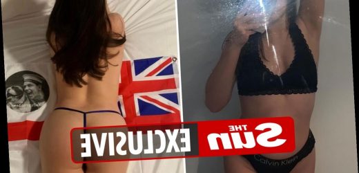 For one image, she draped herself over an Ensign — the flag of the Royal Navy — while wearing just a thong.