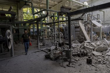 A man inspects the damage of a destroyed boiler room in Kharkiv, eastern Ukraine.Credit:Bernat Armangue