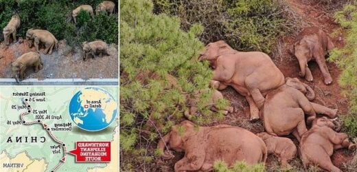 Scientists are baffled by elephant herd’s 300-mile trek across China: Behaviour is completely out of character.. and famous photo of them sleeping ‘shows how exhausted they are’