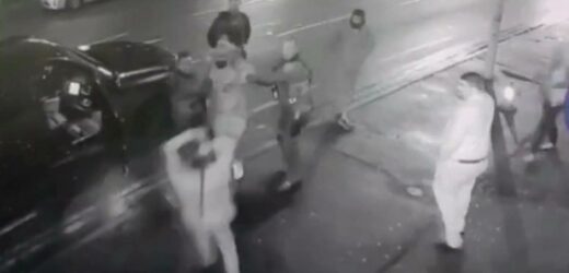 The horror unfolded just moments after the first man was captured throwing traffic cones near a bus stop.