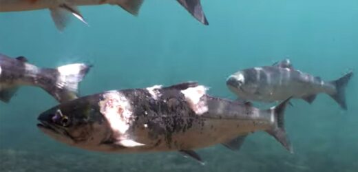 Sockeye salmon in Washington’s Columbia River are seen with sores and puffy patches from a fungal infection caused by exposure to hot water in video that was released Tuesday by group Columbia Riverkeeper.
