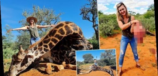 Woman poses with giraffe’s HEART as she boasts about husband arranging for her to shoot the animal as a Valentine’s Day present in South Africa