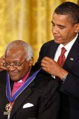 President Barack Obama presents the Medal of Freedom to Bishop Desmond Tutu during a ceremony in the East Room of the White House in 2009.Credit:Getty Images