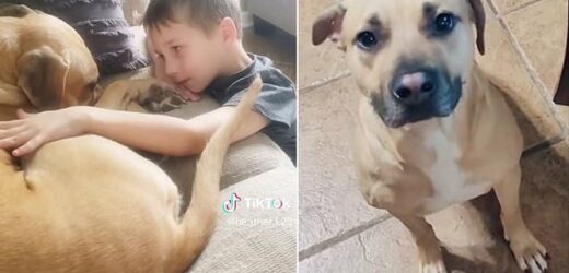 Heartwarming moment Louisiana boy reassures his pit bull rescue dog he is ‘so loved’ after he saved up for adoption fee