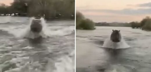 THIS is the terrifying moment tourists were chased by a ferocious hippo during a speedboat safari in Kenya