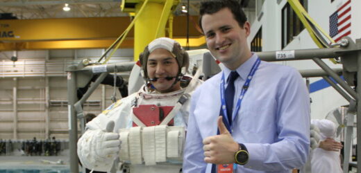 Dr John Cherry with astronaut Kjell Lindgren at NASA’s neutral buoyancy facility in Houston, Texas.