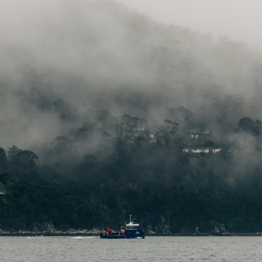 A Huon Aquaculture boat travels up the D’Entrecasteaux Channel, which locals say is polluted by effluent from fish farms.Credit:Adam Gibson