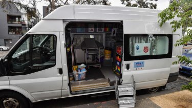 St Vincent’s COVID-19 vaccination van at the Salvation Army’s Flagstaff Crisis Accommodation Centre. Credit:Joe Armao