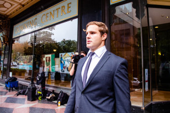 St George Illawarra player Jack de Belin leaving the Downing Centre on Thursday.Credit:Edwina Pickles